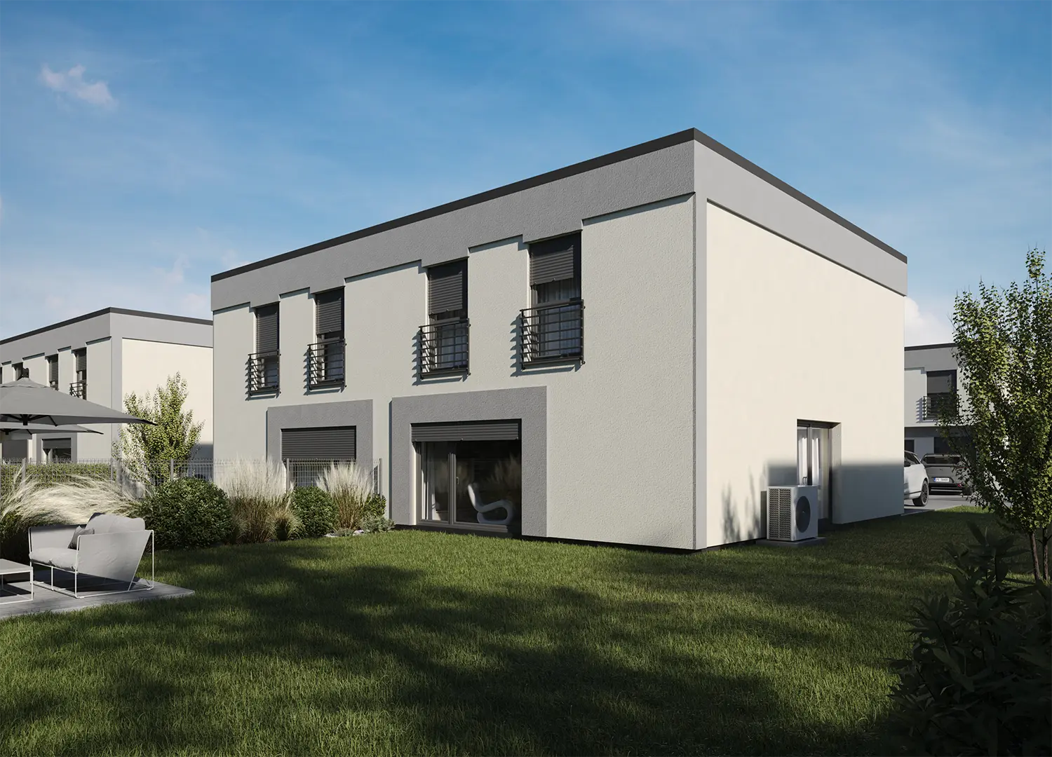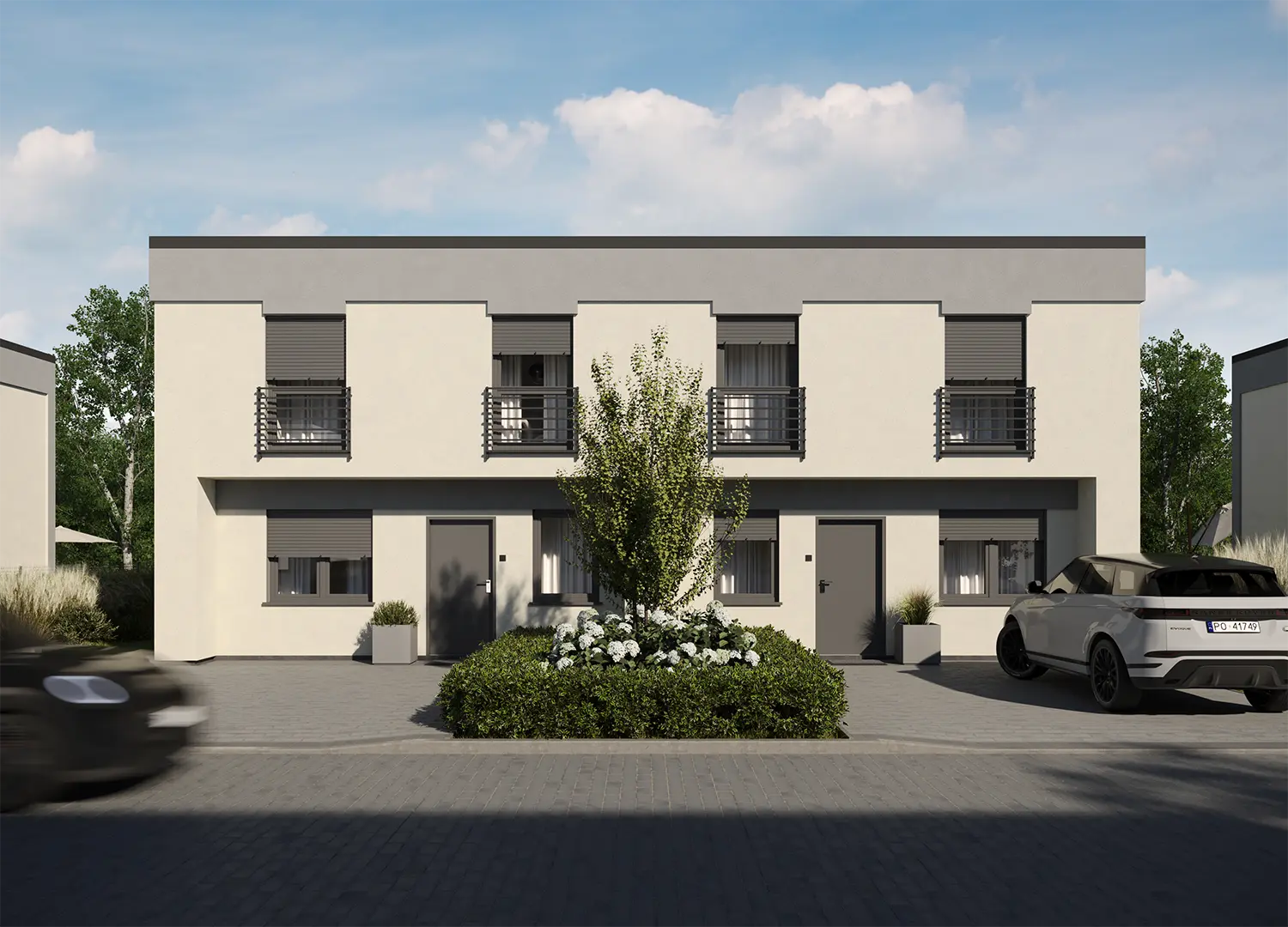 Dom jednorodzinny w zabudowie bliźniaczej, piętrowy z dachem płaskim, położony na nowym osiedlu w Napachaniu koło Rokietnicy, 15 km od Poznania. Dom w układzie niezależnym, idealny dla 2-5 osobowej rodziny.
