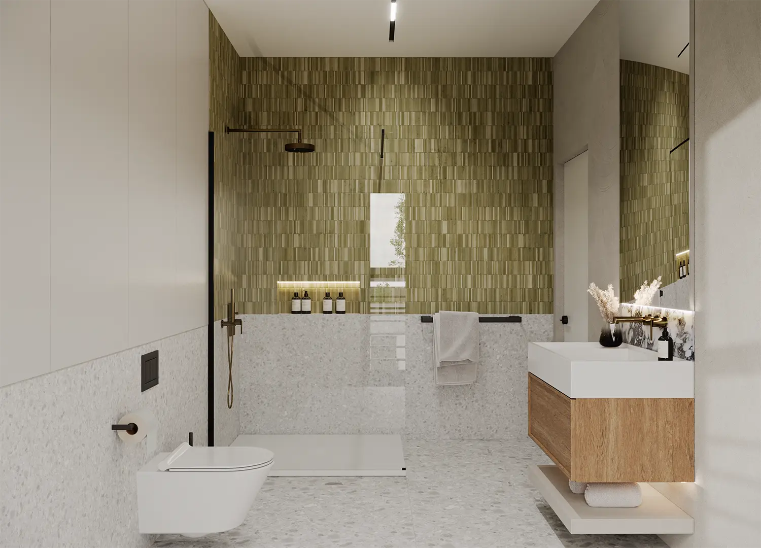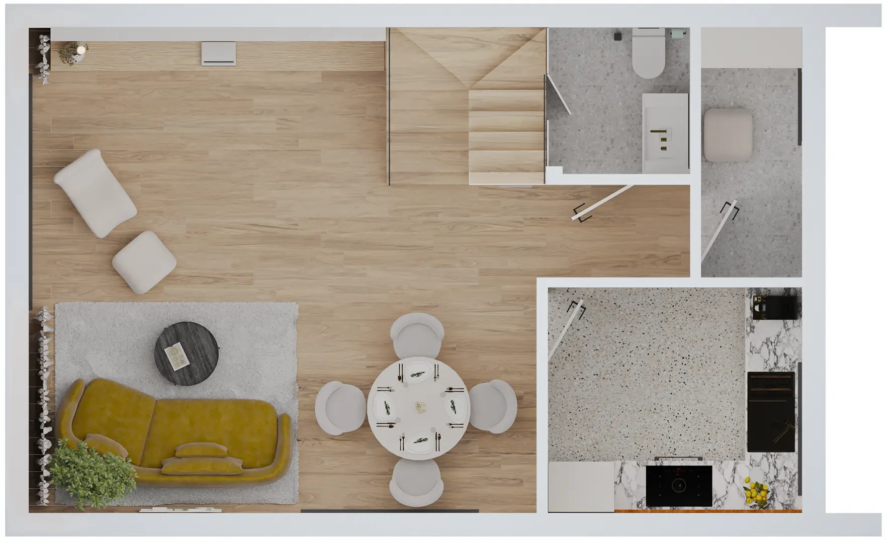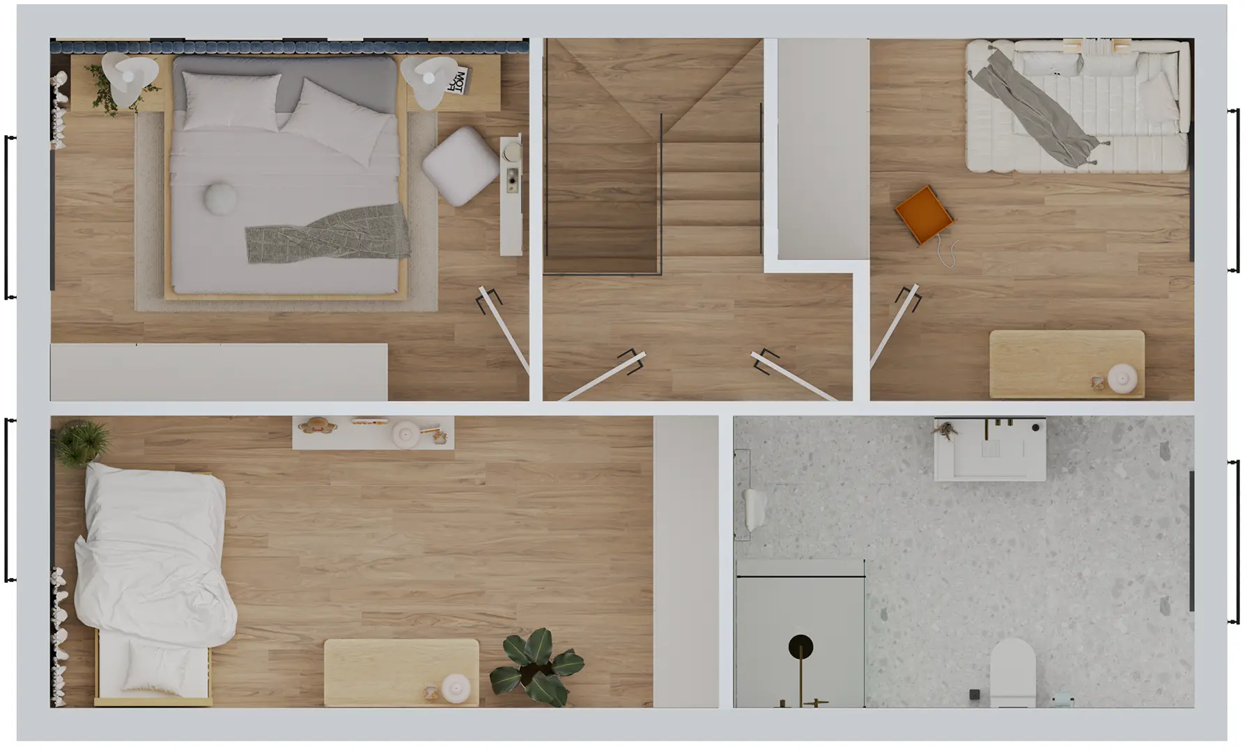 – instalacja CO zawiera: dwa rozdzielacze pętli grzewczych (parter i piętro), ogrzewanie podłogowe we wszystkich pomieszczeniach,