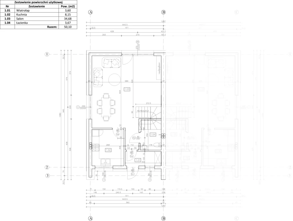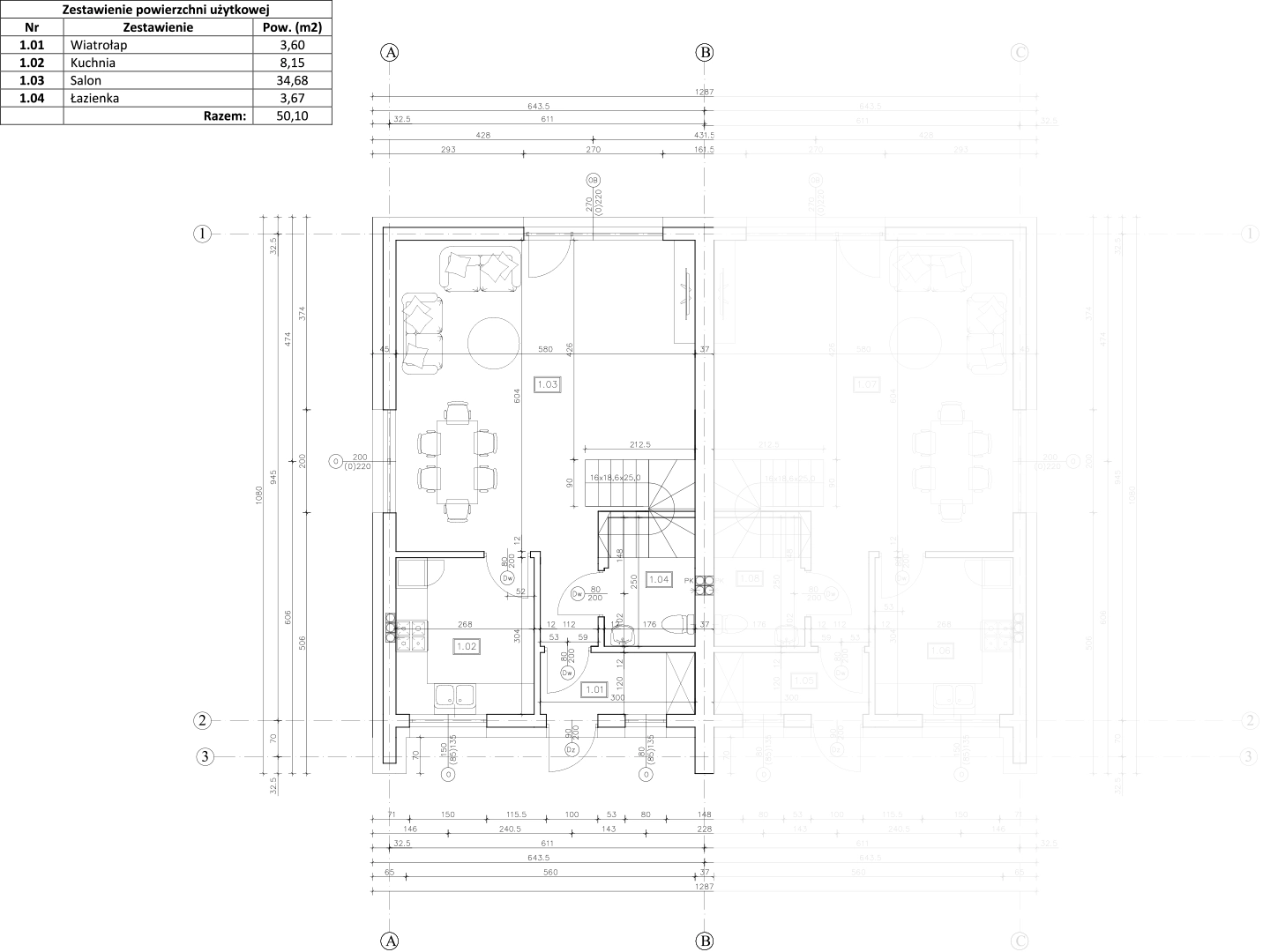 – podłoga piętro – styropian 3cm + posadzka betonowa maszynowa,